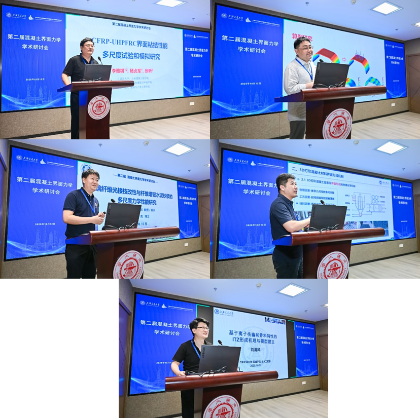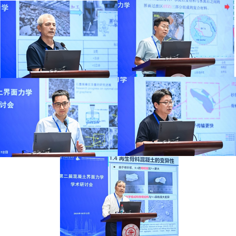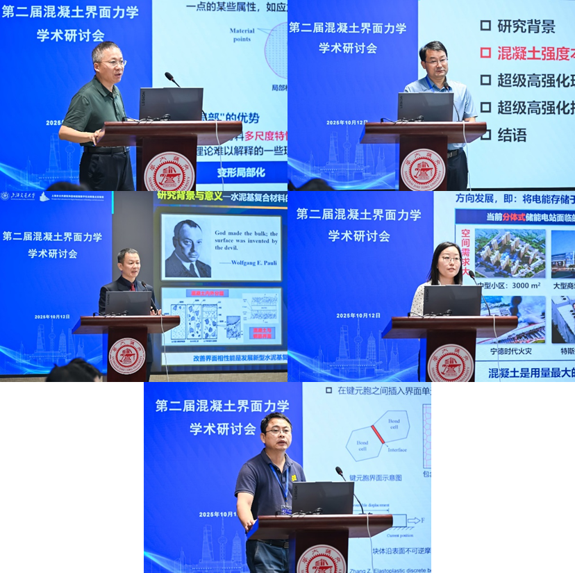 经过充分讨论,与会学者在多个方面达成重要共识:需建立统一的界面厚度和性质表征体系;应综合运用CT重构、纳米压痕与数值仿真等先进量化分析手段;在力学模型中需充分考虑剪切滑移与法向变形的耦合作用。专家们一致认为,混凝土中的界面虽微却在宏观性能起着关键作用,深入研究可为绿色可持续混凝土设计奠定了重要基础;同时,讨论还拓展了对界面类型的认识:界面研究不限于固-固界面,还包括固-液、气-固、气-液等界面类型。学者们建议将界面的研究范围扩展至混凝土新拌阶段,并强调需要加强材料、结构、化学等多学科的交叉融合和互补创新。