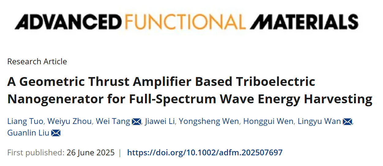 海洋原位能源的高效获取是构建海洋物联网和大数据的关键技术,深度契合国家和广西向海图强战略。近期,我院蓝色能源团队在基于摩擦纳米发电机(TENG)高效采集低频海洋波浪能方面取得进展。研究成果发表于《自然通讯》(Nature Communications)、《先进功能材料》(Advanced Functional Materials)等国际知名学术期刊。
