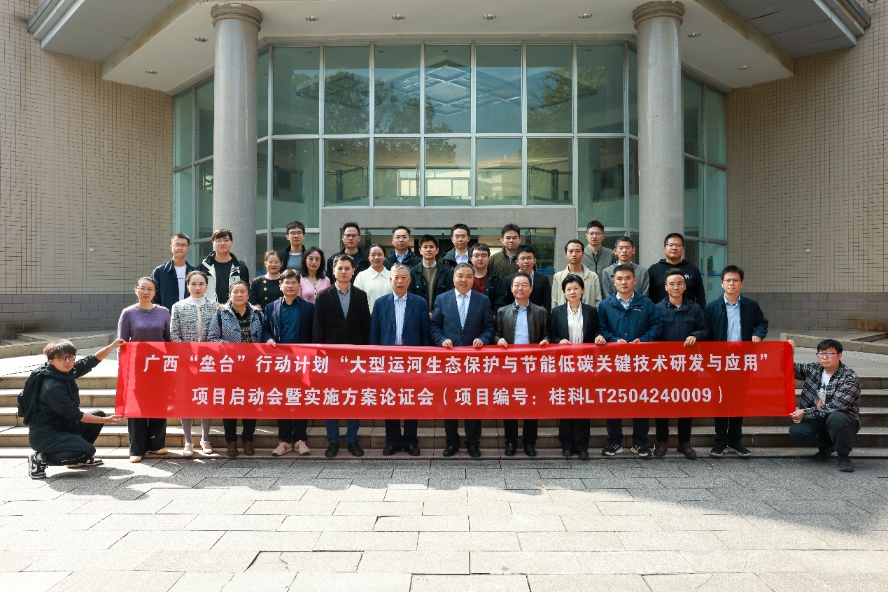 肖建庄作为项目负责人汇报了项目总体情况。他表示,开展大型运河生态保护与节能低碳关键技术研究,紧密契合国家水利基础设施绿色低碳转型战略,积极响应内河航运节能减排与生态环保政策导向。项目的实施,不仅将有力推动广西现代运河实验室在工程应用技术方面的重大创新,直接支撑平陆运河工程的高质量建设;也将在共性关键技术方面形成积累,为我国未来大型运河工程提供技术储备与解决方案。
