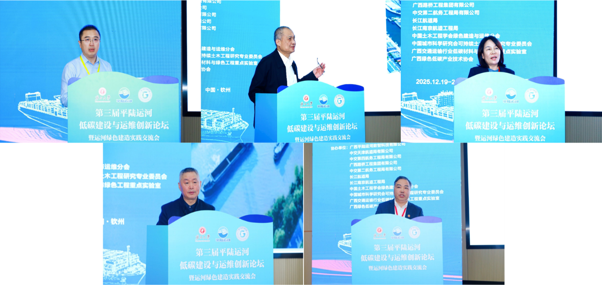 2025年12月19日至21日,由广西大学、平陆运河集团有限公司、广西产业技术研究院联合主办的第三届平陆运河低碳建设与运维创新论坛暨运河绿色建造实践交流会在钦州成功举办。本次论坛由广西现代运河实验室、广西平陆运河建设有限公司、广西大学土木建筑工程学院、广西大学双碳科学与技术研究院、广西产研院绿色低碳技术研究所、中国施工企业管理协会、广西投资项目建设管理协会共同承办,广西平陆运河数智科技有限公司、中交天津航道局有限公司、中交第四航务工程局有限公司、广西路桥工程集团有限公司等11家单位共同协办。钦州市人民政府副市长王文泽,平陆运河集团有限公司党委书记、董事长王劼耘,我校党委副书记、校长肖建庄出席会议并致辞。广西平陆运河集团有限公司副总经理、总工程师韦德鉴主持开幕式。