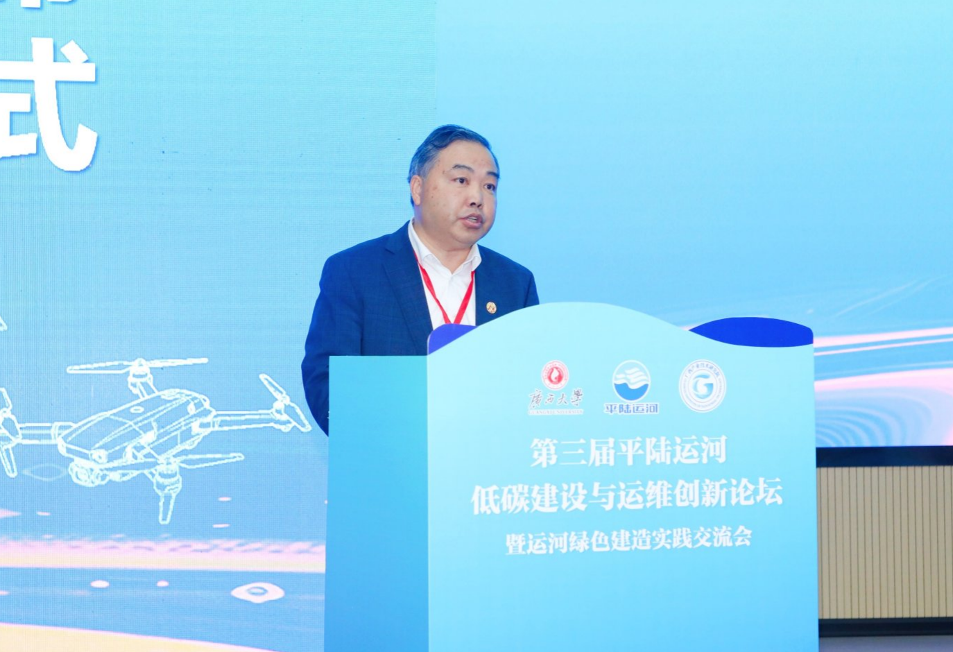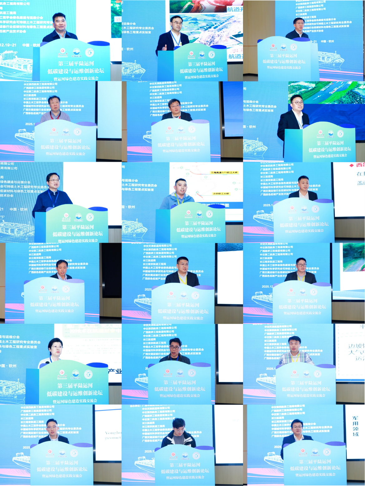论坛组织了5场大会报告以及18场特邀报告,来自平陆运河集团有限公司、中交水运规划设计院有限公司、华北水利水电大学、重庆交通大学、广西大学、平陆运河建设有限公司、中交疏浚技术装备国家工程研究中心、湖南大学、广西交通设计集团有限公司、广西人工智能学院、广西路桥工程集团有限公司、广西产业技术研究院、黄河勘测规划设计研究院有限公司、广西路建工程集团有限公司、中交天津航道局、中交第四航务工程局有限公司、长沙理工大学等17家单位的专家学者围绕运河绿色建造前沿技术、低碳运维模式、低空经济、智能化监测与管理等多个主题分享了最新研究进展和工程实践经验,为现代运河绿色建设与运维提供了创新路径,也为未来现代运河的高质量发展提供了重要参考。