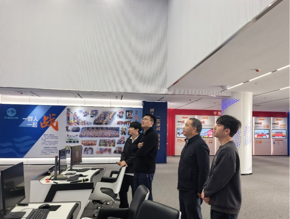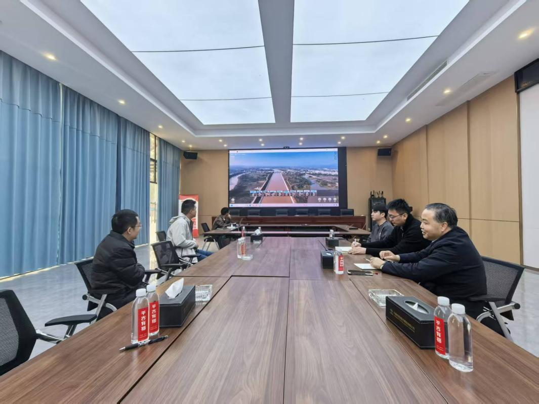 随后,肖建庄教授一行参观了平陆运河建设有限公司数字孪生智慧运河系统,详细听取了智慧运河系统的建设进展。该系统依托遥感卫星、无人机倾斜摄影及BIM技术构建起三维数字孪生底座,集成建设管理、智慧工艺、综合监控、安全管控、数据指挥五大板块。目前系统已接入200余路视频点位,AI技术深度赋能安全管控与水位预测,高边坡位移监测实现精准预警,为运河全寿命期智慧化运营管理奠定了坚实技术底座。