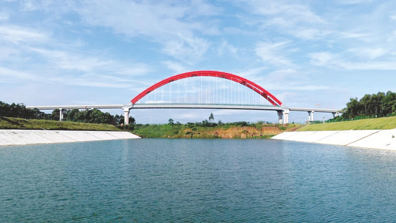 平陆运河东坝村大桥建成通车。平陆运河集团供图